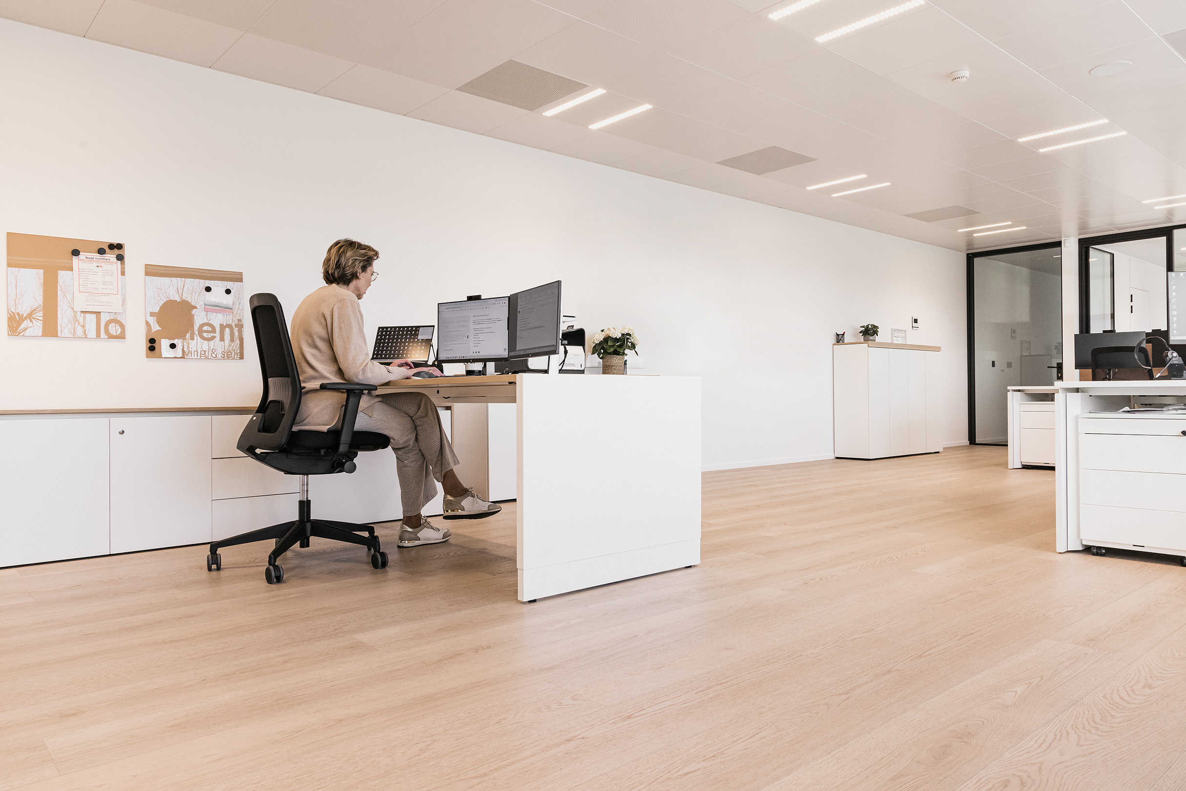 “Ik koos voor de inrichting van het nieuwe kantoor zoveel mogelijk voor producten en materialen van mijn klanten. Coretec® is er daar al jaren één van. Ik kende de innovatieve sterktes van de vloer al heel goed. Dit is een vloer die lang meegaat”. Zo is de vloer bijna symbool voor de duurzame relatie en partnerships die Sabine beoogt.