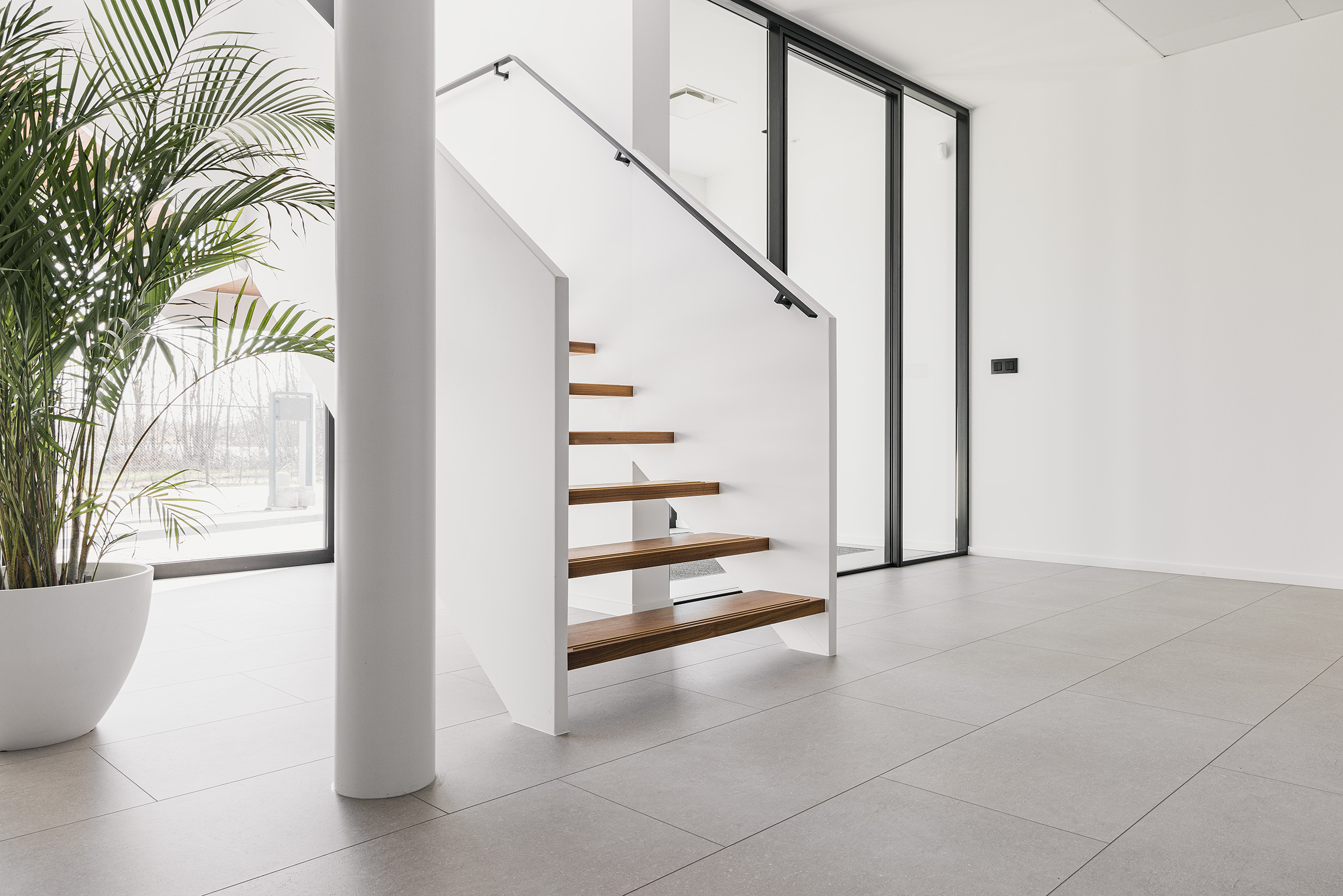 TopTalents heeft maar liefst 350 m² vloer. Er was dus naast de vloer met houtlook, nog ruimte voor een extra keuze. Voor de hal en backoffice werd dat een vloer uit de Ceratouch-collectie, vloeren met een hyperrealistische tegeluitstraling. Door het matte effect en de reliëfstructuur zijn ze niet te onderscheiden van the real stuff. Of toch weer wel, maar niet door hoe het eruit ziet… Wel zit het verschil opnieuw in de ultieme slijt- en impactbestendigheid. Dat komt door een geavanceerde toplaag die speciaal ontwikkeld is voor deze collectie.