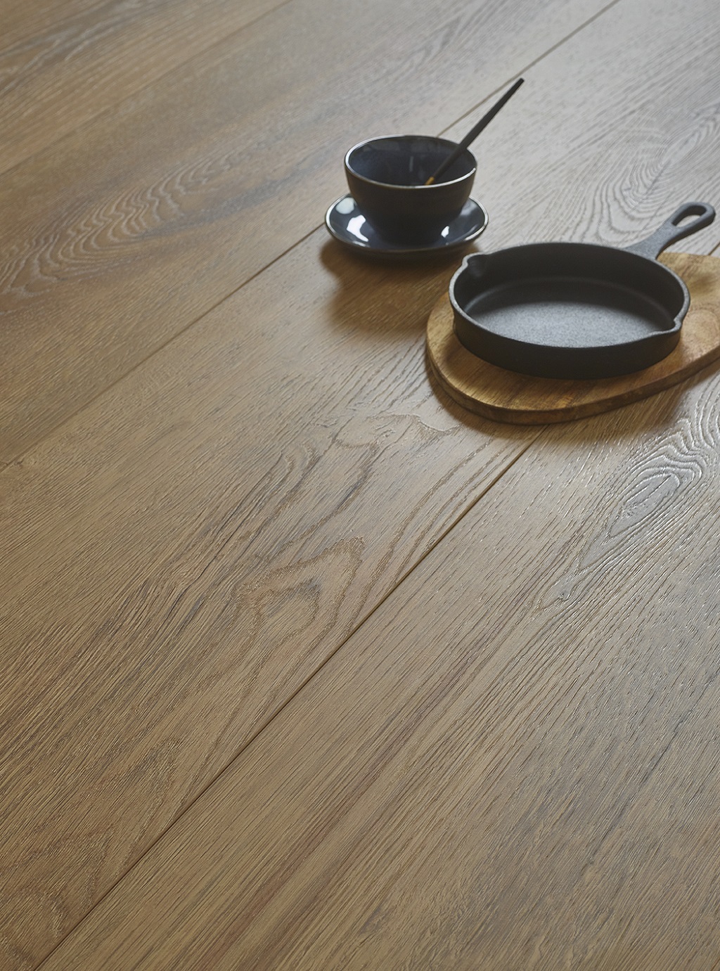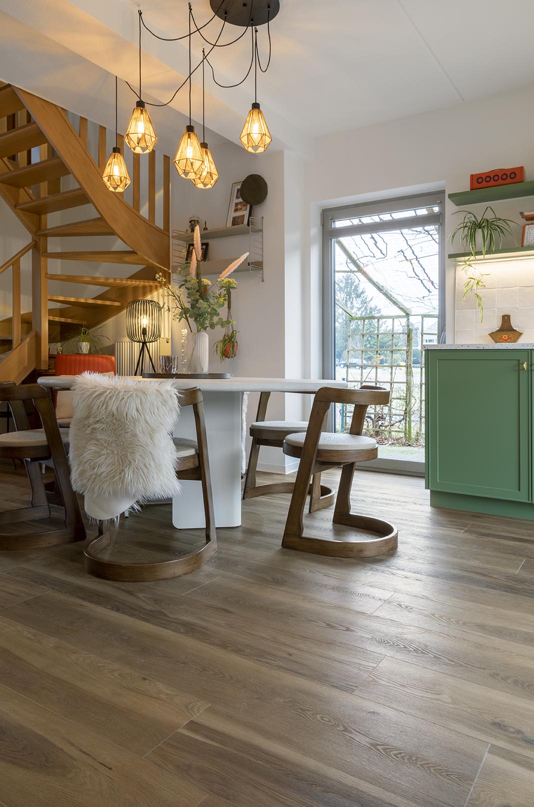 “Qua kleurgebruik stonden bewoners Kurt en Aurore haaks op elkaar. Kurt hield van wittinten, terwijl Aurore juist warmere tinten wilde laten terugkomen. Ik koos voor de middenweg met de vloeren Meadow en Mirage. Deze hebben een heel lichte tint, maar ook een warme, zachte uitstraling. De perfecte combinatie.” In de bel-etagewoning in Haren werd Meadow geïnstalleerd.