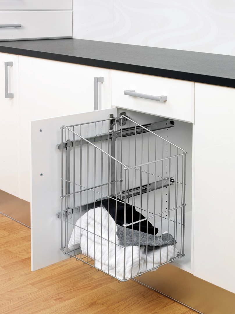 Uittrekbare wasmanden speciaal om in te bouwen in bijvoorbeeld een badkamermeubel, slaapkamerkast, keukenkast of een kast in de bijkeuken.