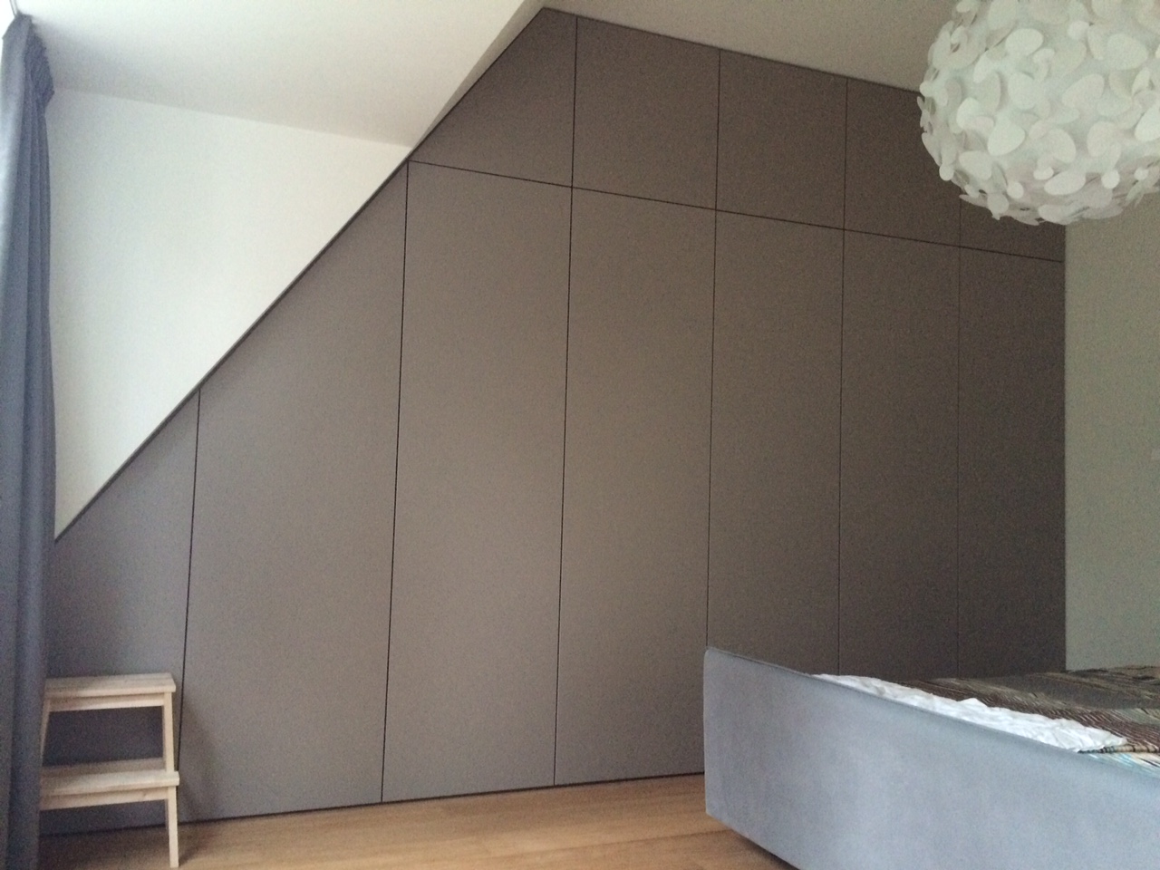slaapkamerkast onde schuine kant, ruimte optimaal benut.
