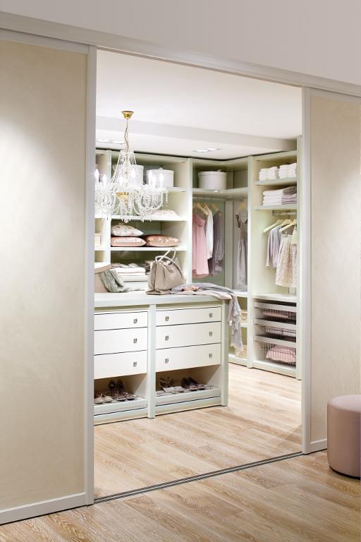 Dankzij diverse extra’s, zoals elementen voor schoenen, sieraden, stropdassen, rokken of broeken en led-verlichting, is elke kast individueel op maat te maken.