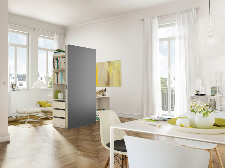 Dit flexibele systeem kan werkelijk overal worden geplaatst, zowel vrijstaand (roomdivider) als in een nis. Natuurlijk kan de kastruimte op verschillende manieren worden ingericht, bijv. met legborden en lades, en is eenvoudig verder uit te breiden of aan te passen zodat het systeem een hele nieuwe functie krijgt. Dit opbergsysteem wordt niet vast ingebouwd, maar is demontabel, waardoor verplaatsen een koud kunstje is. Van huiskamer tot thuiskantoor, van kinderkamer tot studentenkamer; dit opbergsysteem verhuist eenvoudig met u mee.