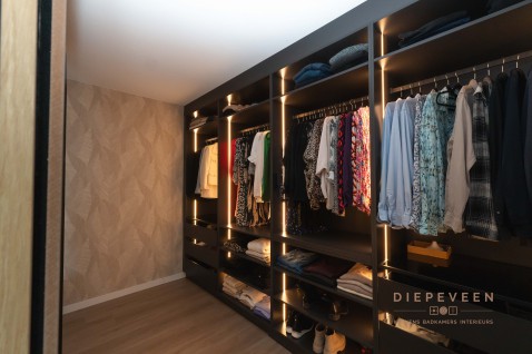 Klaar met het uiterlijk van de kast? Dan is het nu tijd voor de laatste stap: de indeling. Een ander groot bijkomend voordeel van een kast samenstellen is dat je ook de interne indeling kunt aanpassen. Stel je draagt eigenlijk alleen maar overhemden en pantalons. Dan zou het zonde zijn om een ‘standaard’ kledingkast ergens te kopen die grotendeels legplanken heeft. Hier heb je dan vrij weinig aan. Kies dan bijvoorbeeld voor een interne indeling waarbij hangrekken in de meerderheid zijn, maar die wel genoeg legplanken heeft voor je schoenen en een aantal jeans.