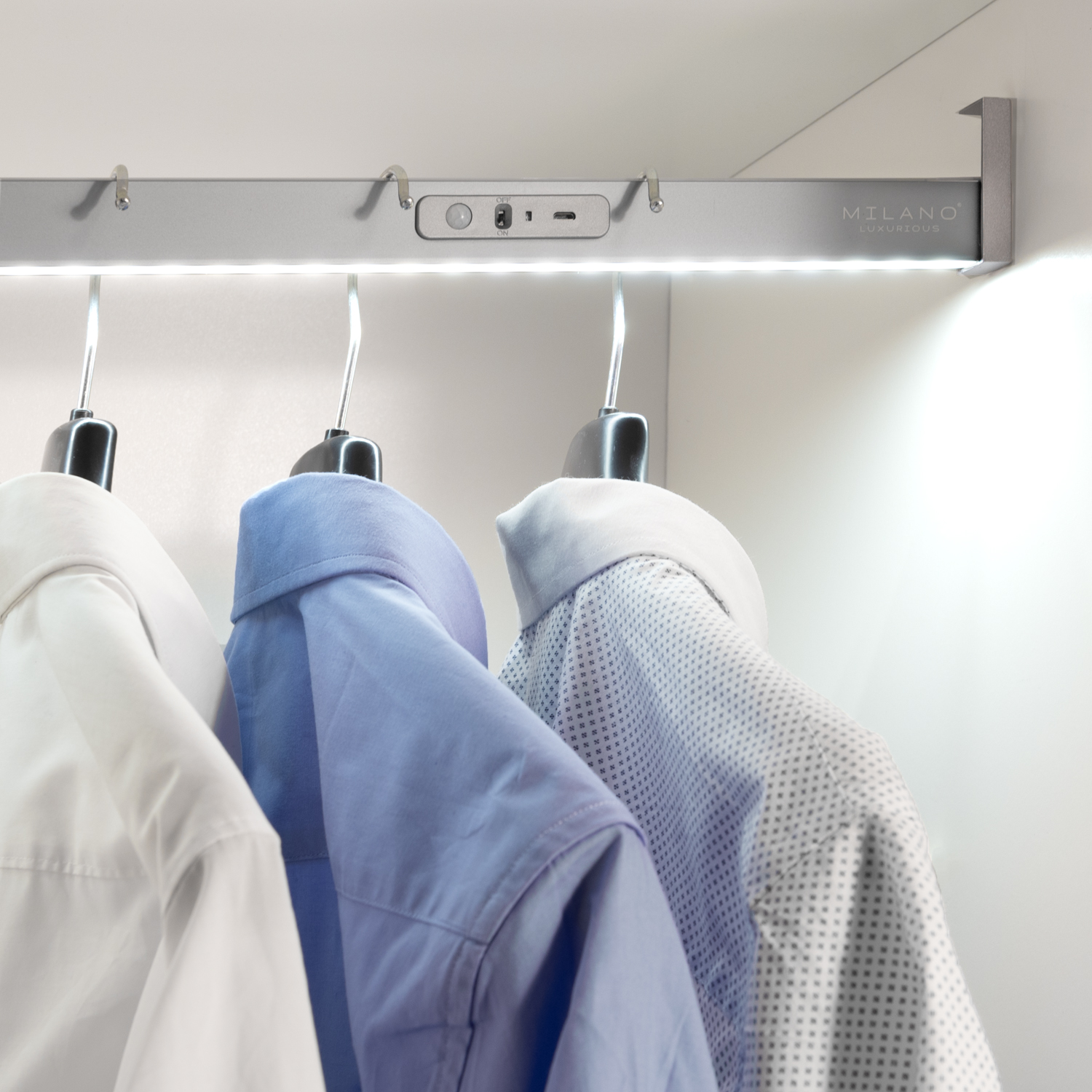 Ga je voor een extra luxe uitstraling en een kast die goed is verlicht waardoor je makkelijker de juiste kleding kunt kiezen? Ga dan voor een kledingroede met ledverlichting. Deze kledingstangen met aan de onderkant een ingebouwde ledstrip schakelen aan door middel van een ingebouwde bewegingssensor en schakelen na een tijdje weer automatisch uit.