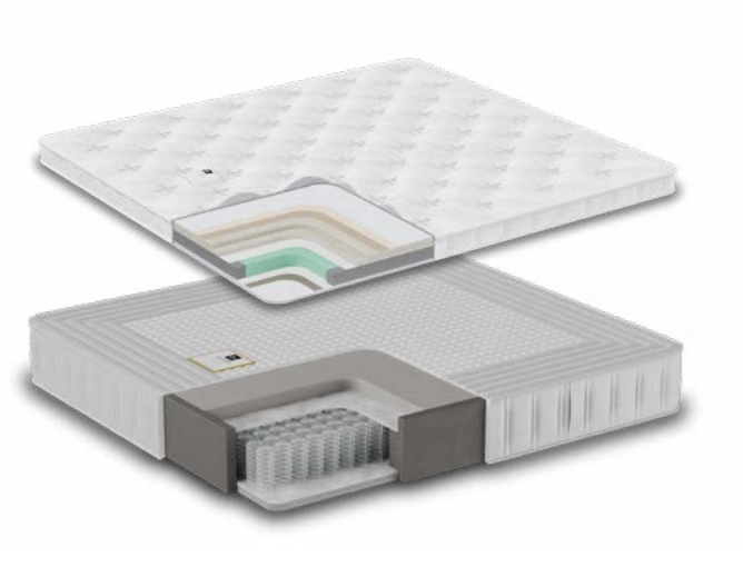 Deze boxspring is standaard voorzien van het Splendid matras met een Superior HR topmatras. Het matras beschikt over een 5-zone pocketveersysteem, met diverse comfortlagen die zich aanpassen aan de contouren van je lichaam. Het veersysteem biedt extra steun in de schouder- en heupzones. Het matras is ook geschikt voor een elektrisch verstelbare variant. Het Double Side Core System stelt je in staat om te kiezen tussen medium of firm stevigheid in één matraskern.