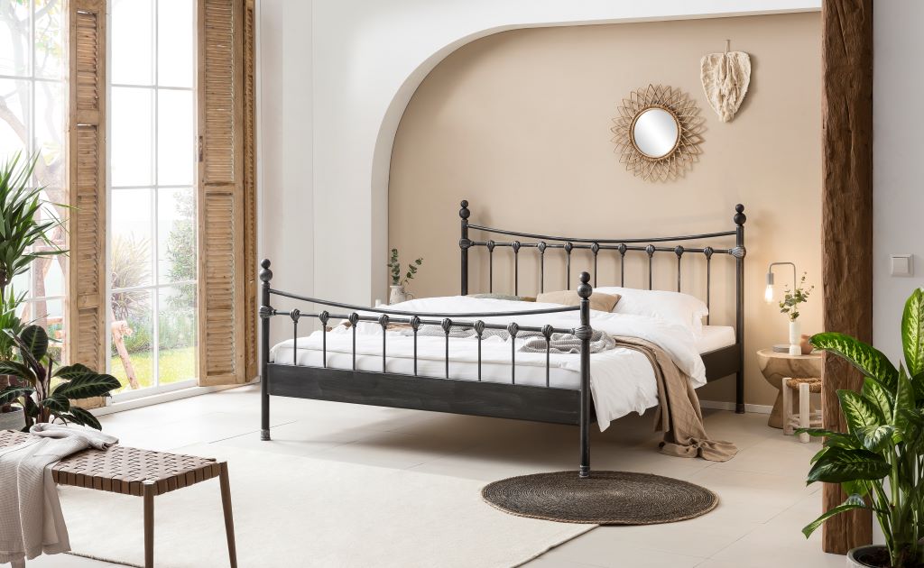 Dit metalen bed combineert romantisch design met robuuste kwaliteit. Dankzij de dwarsliggers is het bed geschikt voor elk type bodem en biedt het uitstekende ondersteuning: