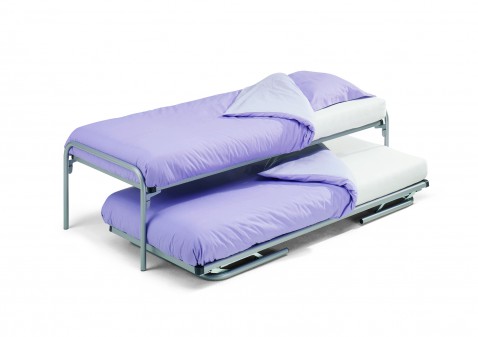 Praktische ruimtebesparende bedcombinatie van boven- en onderbed, waarmee je snel een extra slaapplaats creëert.