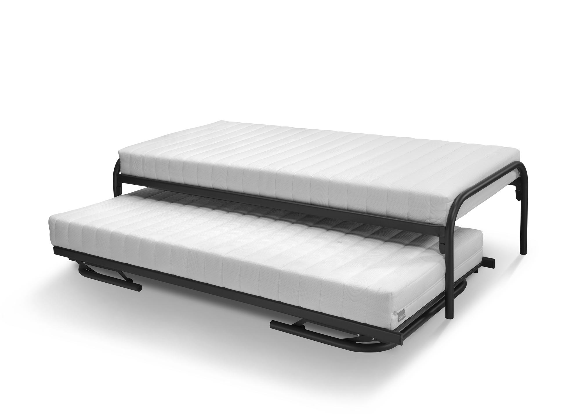 De Duet is een klassieker in het programma van Avek. Onder- en bovenbed zijn robuust uitgevoerd en voorzien van een lengtegespannen spiraalnetwerk met dwarssteunen. Het onderschuifbed past met matras en beddengoed onder het bovenbed, en is eenvoudig uitklapbaar. Zo heb je altijd een extra slaapplaats in huis.