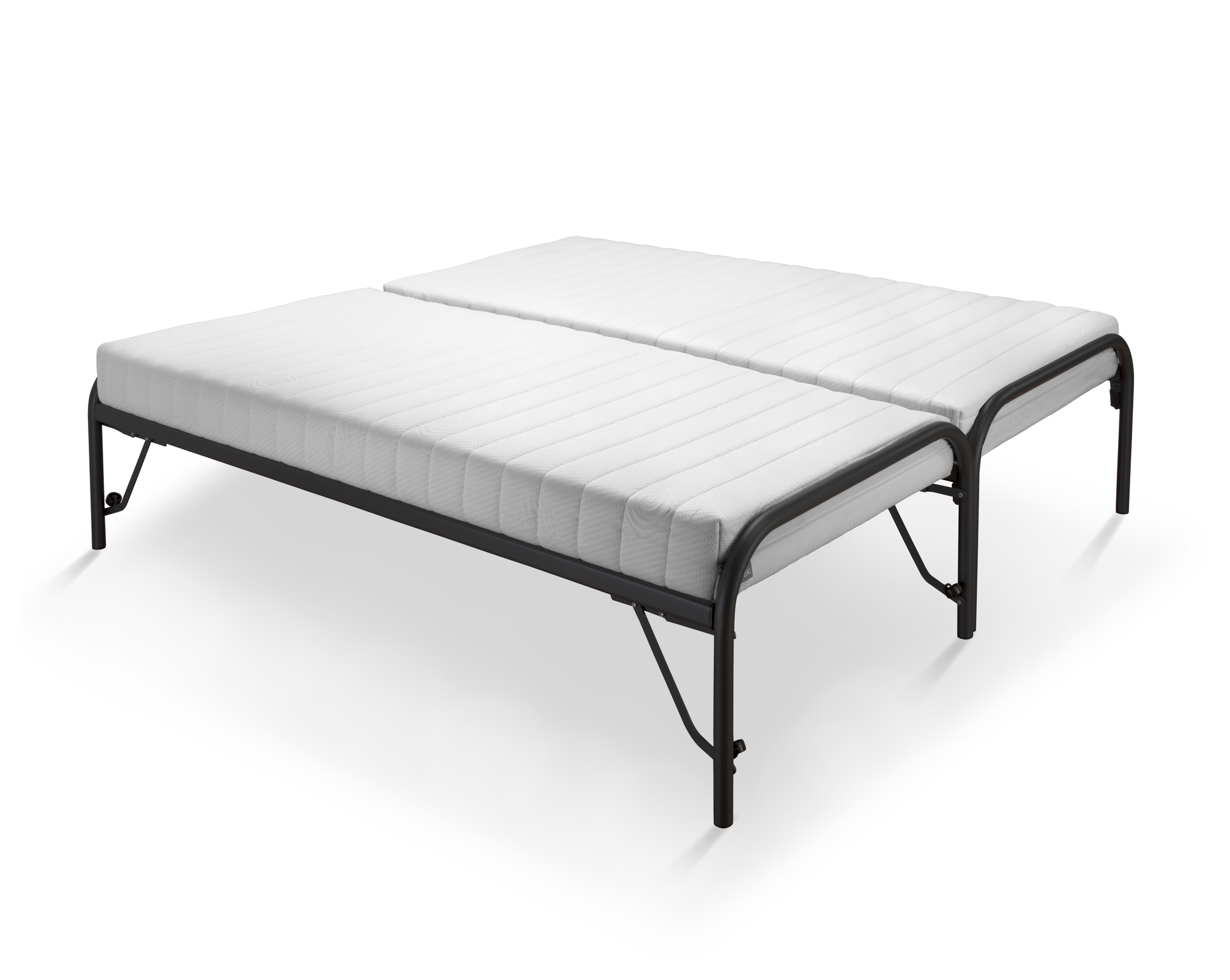 Laat je gasten heerlijk slapen op het Twin dubbeldivanbed. De dwarsgespannen spiralen zorgen voor een optimale ondersteuning en bieden aangenaam comfort. De hogere uitvoering van de bedden vergemakkelijkt het in- en uitstappen. Ingeklapt neemt het bed weinig ruimte in.