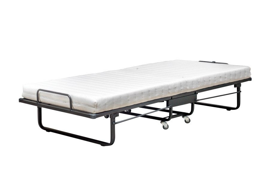 Het vouwbed beschikt over een metalen frame met ergonomisch dwarsgespannen TÜV goedgekeurde spiraalbodem.