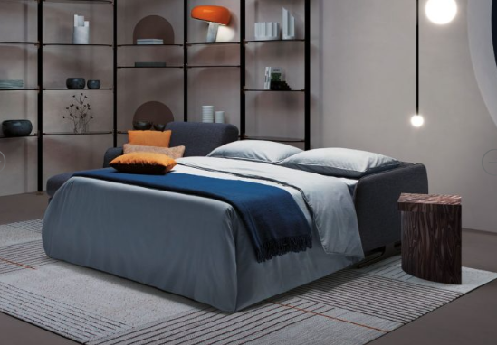 Deze moderne slaapbank biedt zowel overdag als 's nachts optimaal comfort en is verkrijgbaar in diverse afmetingen en stoffen.