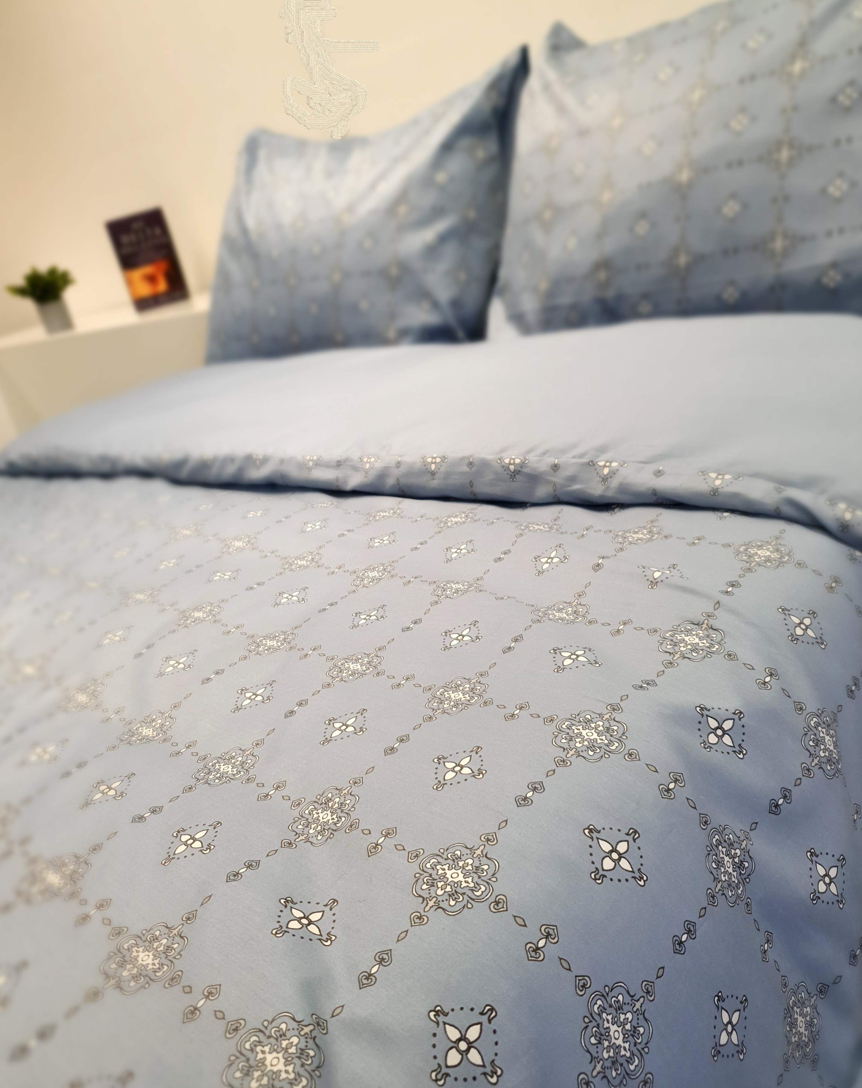 Het dessin Lei is weer op voorraad. Het is een dekbedovertrek van 100% katoensatijn 220TC