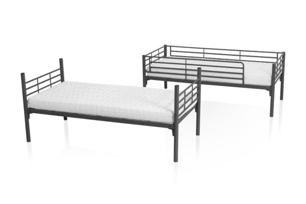 Stapelbed Jesse wordt geleverd inclusief stevige rasterbodems, die geschikt zijn voor gebruikers van alle leeftijden en gewichtsklassen. De geïntegreerde valbeveiliging biedt extra veiligheid voor jonge kinderen, terwijl de stabiele ladder zorgt voor gemakkelijke toegang tot het bovenbed.