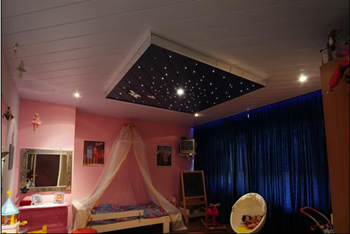 Een speciaal effect creëert u met Luxalon sterrenhemels. De sterrenhemel kan eenvoudig worden ingebouwd in het aluminium slaapkamer plafond.