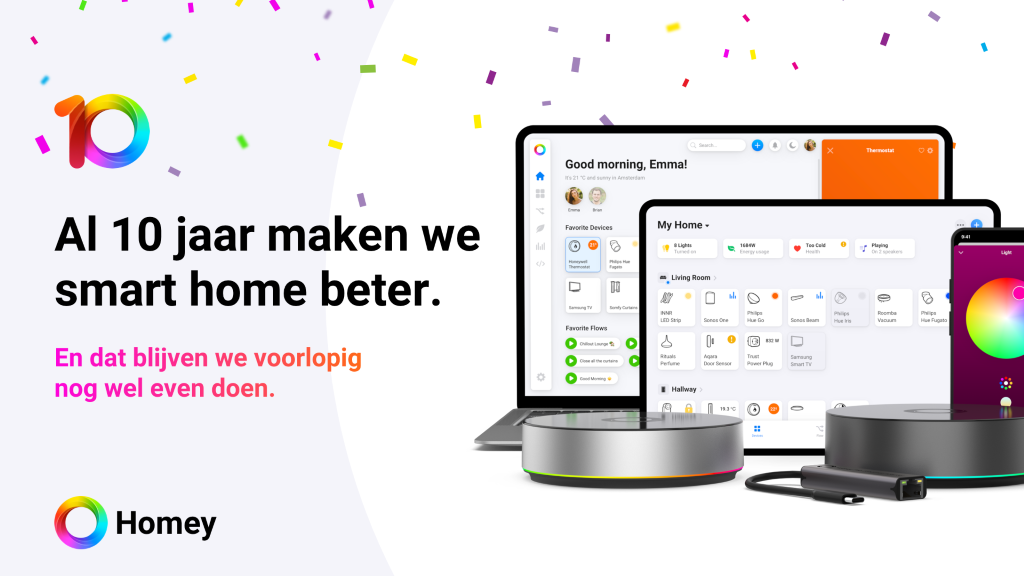 Homey bestaat nu tien jaar en wie jarig is trakteert. Lees hier meer over de jubileumactie.
