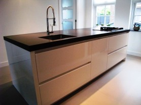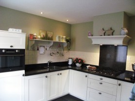 Een mooie keuken. De keuken is voorzien van een prachtig granieten keukenblad. Bekijk de foto’s, en zie het resultaat.