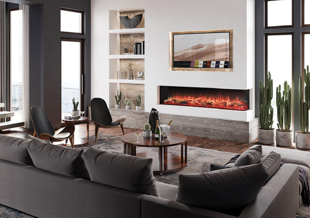 Strakke vormgeving, hyperrealistisch vuureffect en slimme bediening voor moderne interieurs