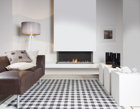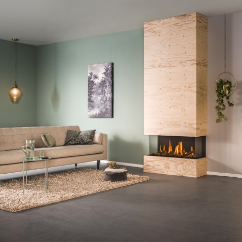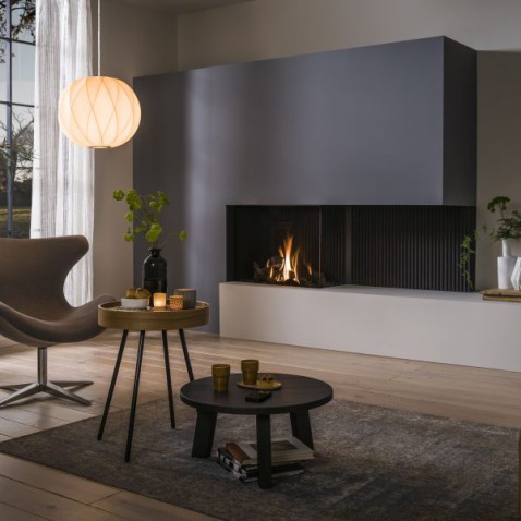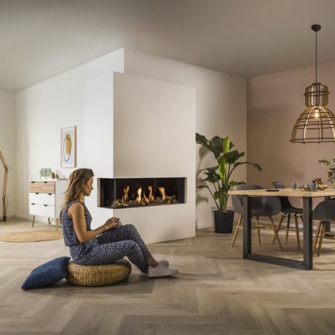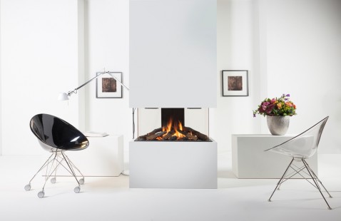 Het schitterende vuurbeeld van deze vrijstaande gashaard, de Balsa 75 gashaard, is vanaf drie zijden zichtbaar.