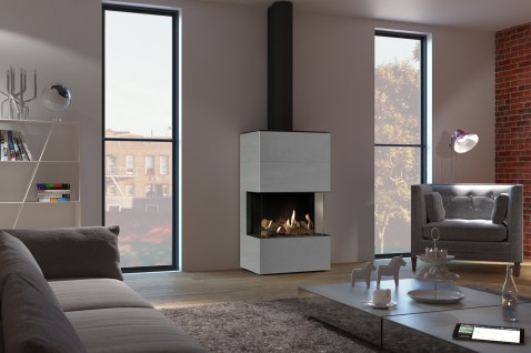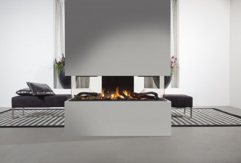 Moderne 3-zijdige haard uit de vernieuwde METRO 100XT lijn. Voorzien van Eco Wave, behoud van een prachtig hoog vlammenbeeld met minder vermogen.