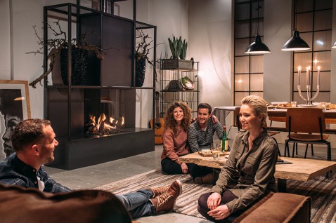 Een tunnelhaard heeft de functie van roomdivider doordat deze in een vrijstaande kolom in de woonruimte geplaatst is.
