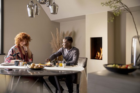 Met de DRU Passo geniet je van een prachtig vuurzicht vanuit alle hoeken van de kamer.