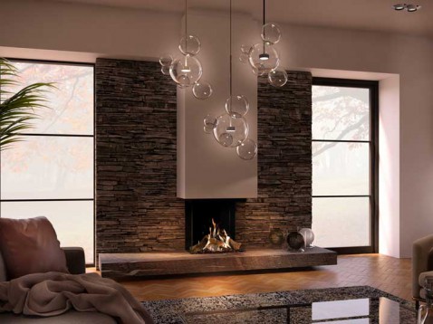 Verkrijgbaar als hangend of vrijstaand model. Als vrijstaand model, is deze haard beschikbaar in 3 varianten: base, original en met voet.