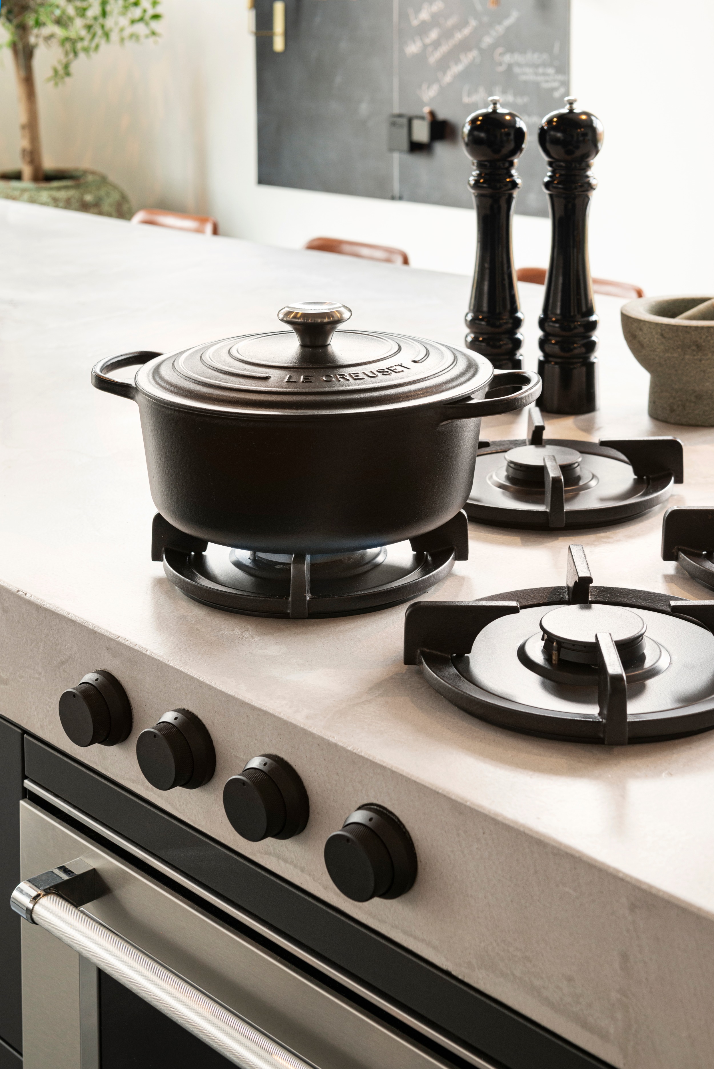 Met het krachtige STEEL All Black FLEXzone inductiefornuis 90cm en 100cm breed, spelen we in op de absolute trend; stoer en sober.