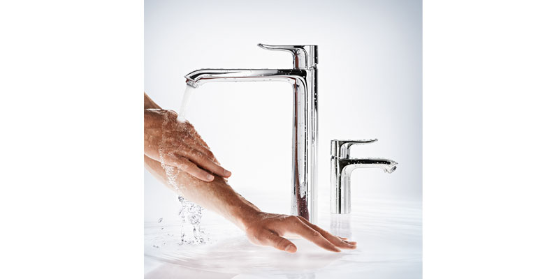 Het water bij de wastafel bedienen met één druk op de knop: dat kan met de nieuwe Talis Select wastafelmengkranen van Hansgrohe.