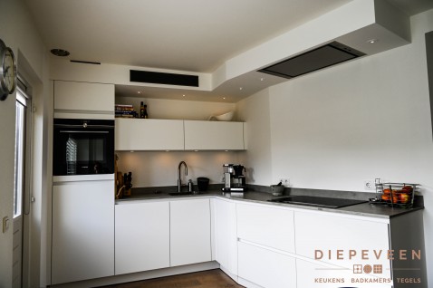 Nieuwe showroomkeuken bij Tieleman Keukens: Schuller Alea Matt / Targa (+ bijkeuken) met Atag, Quooker en Bora