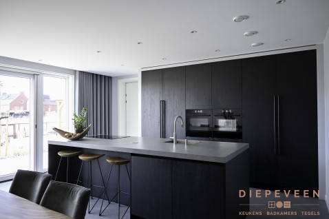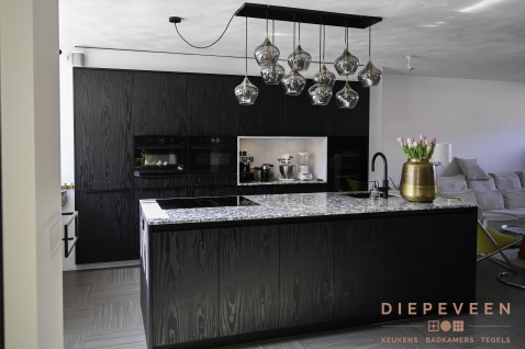Tieleman Keukens binnenkijker: prachtige zwarte Eggersmann keuken met apparatuur van Miele, Siemens, Bora, Quooker en granieten aanrechtblad van Van Gils.