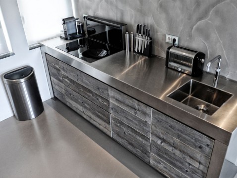 Fronten, aanrechtbladen en kasten van zilvereik geolied – aanrechtblad roestvrij staal silverTouch.