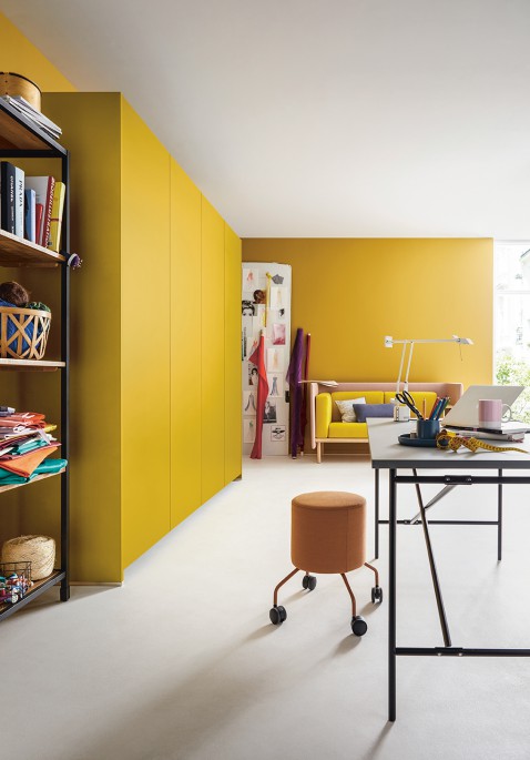 Sterke kleuren en structuren worden speels gecombineerd, “industriële stijl”