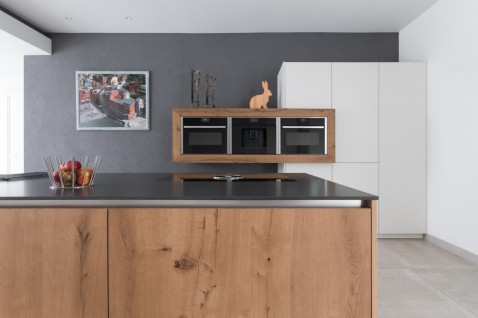 De materialen van het eggersmann-model Smoked Larch zijn uitvoerig en elegant verwerkt. De focus ligt op de precieze bewerking van een boom.