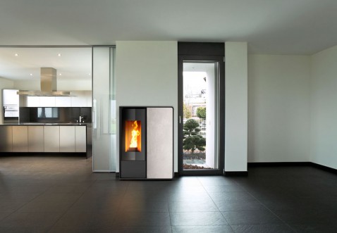 De RIKA Filo 8KW stille pelletkachel met zijpanelen in 5 designs
