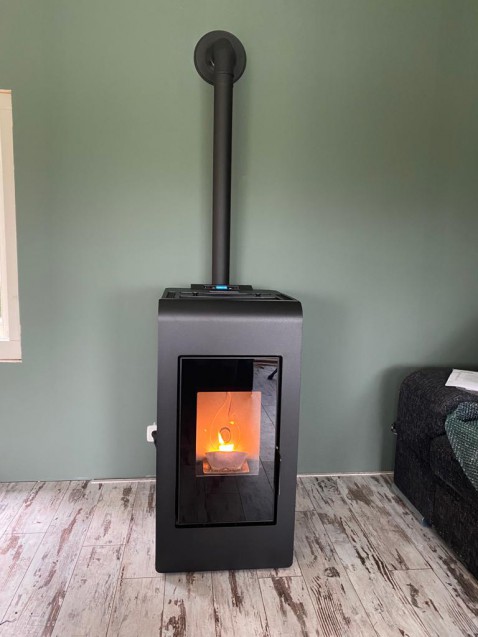 Een fluisterstille pelletkachel van RIKA met tenminste 26KG pelletvoorraad