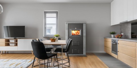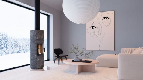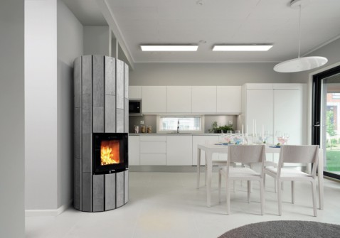 Deze speksteenkachel Blanka 1 van NunnaUuni hoeft men slechts 3 uur te stoken voor een hele dag behaaglijke warmte