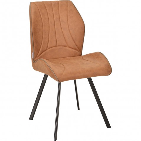 Deze Glen eetkamerstoel van Budgethomestore is gemaakt van een microvezelstof in de kleur Cognac.