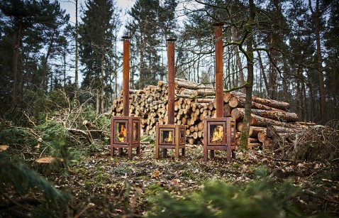 Veelzijdige houtkachel met een industriële uitstraling. Deze is perfect voor buitengebruik.