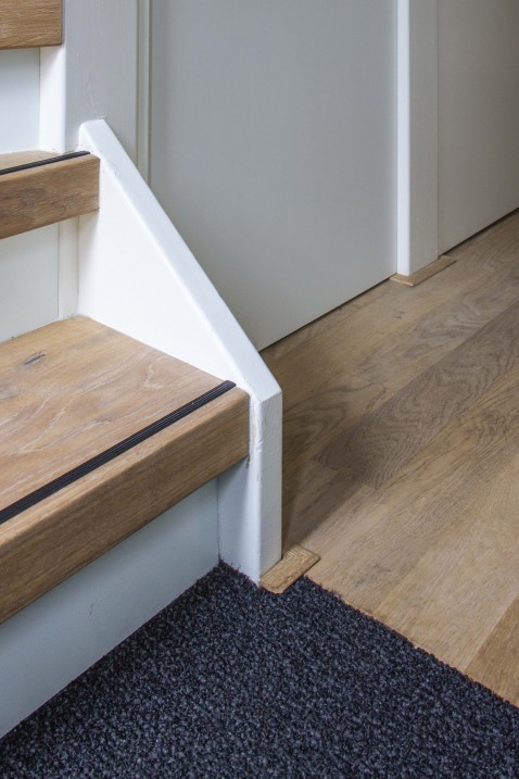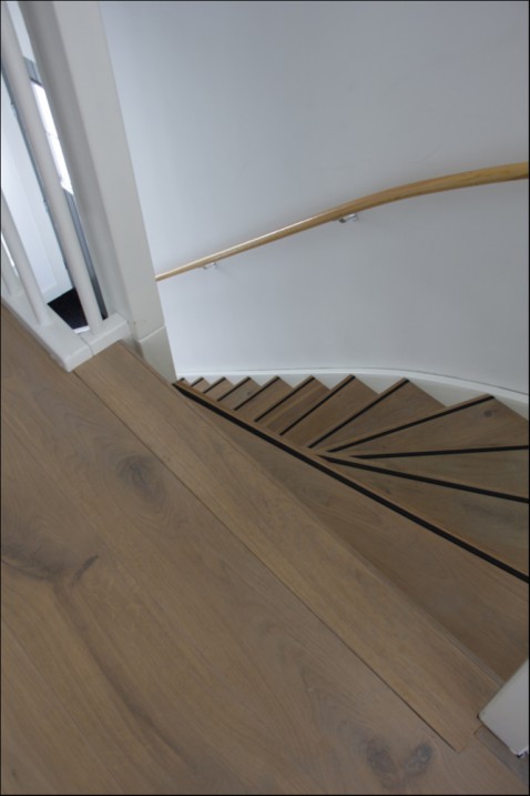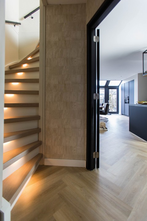 Open trap rondom bekleed met Tarkett eiken pvc, veilig en schoon