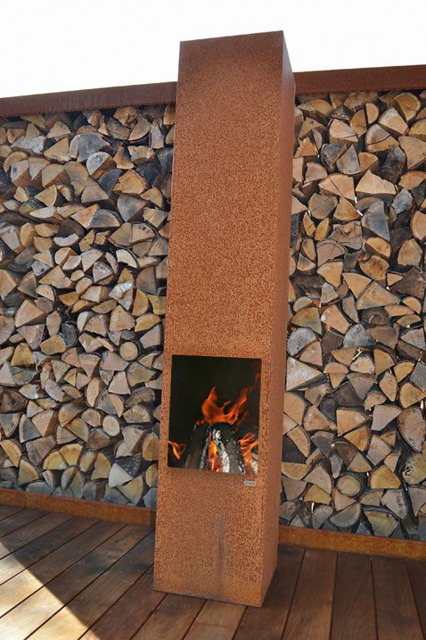 De vuurtafel Zeno Salone is een outdoor salontafel geproduceerd van Cor-ten A staal.