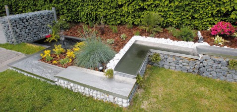 Een vijver met schanskorven geeft de uitstraling van een natuurlijke oever. Duurzaam, sfeervol en een echte blikvanger in de tuin.