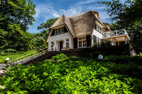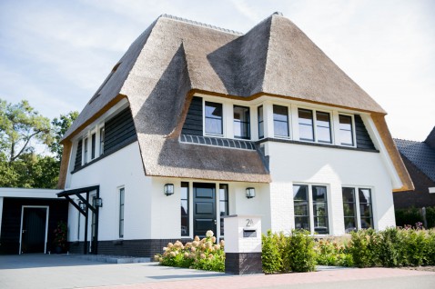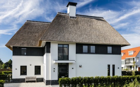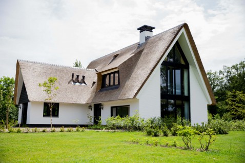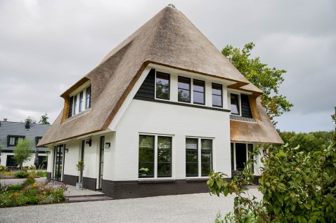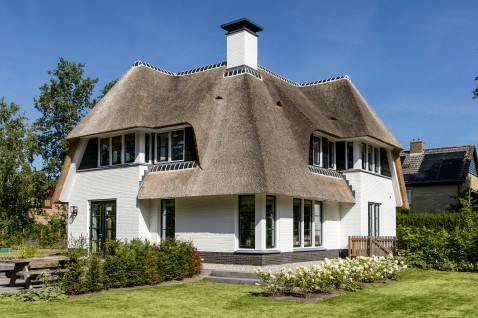 Deze rietgedekte villa is een karaktervolle woning die door de rieten dakbedekking een authentieke sfeer uitstraalt.