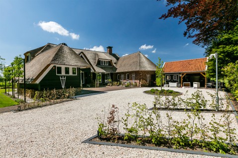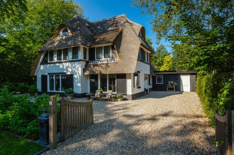 Een schitterend landhuis op een zeer royale kavel. Rietgedekt, witte gevels, potdekselwerk, alles klopt aan deze woning!