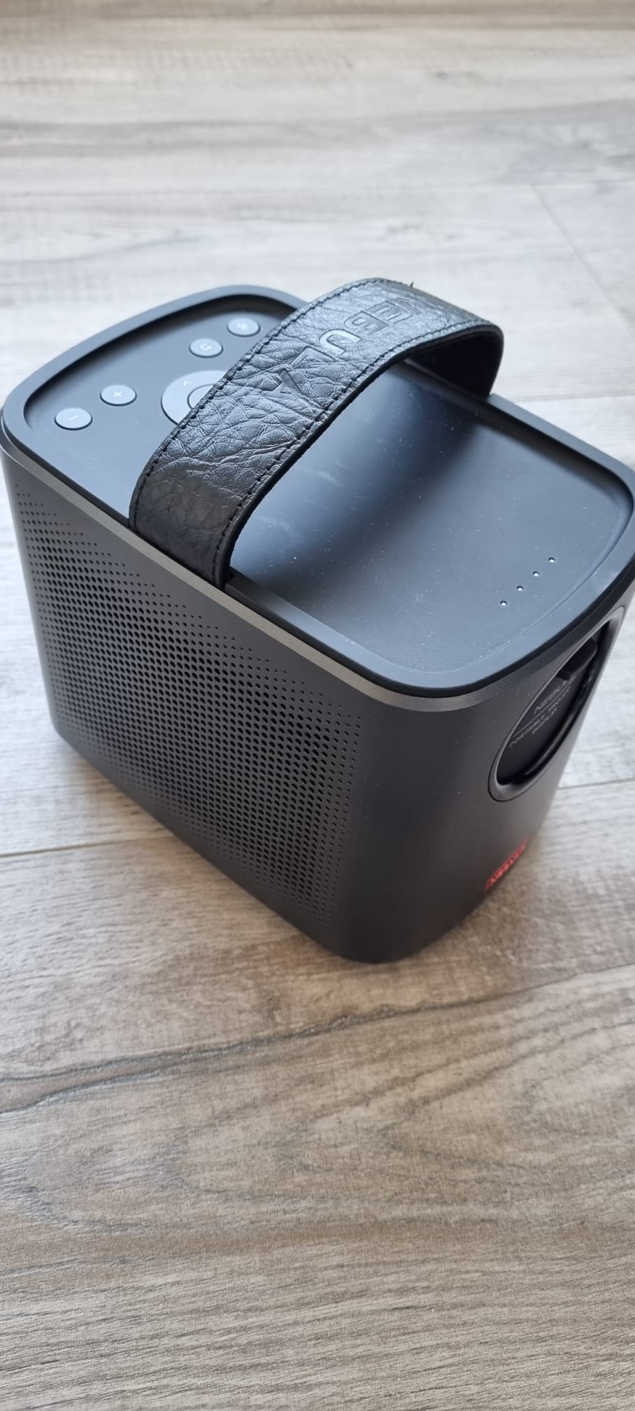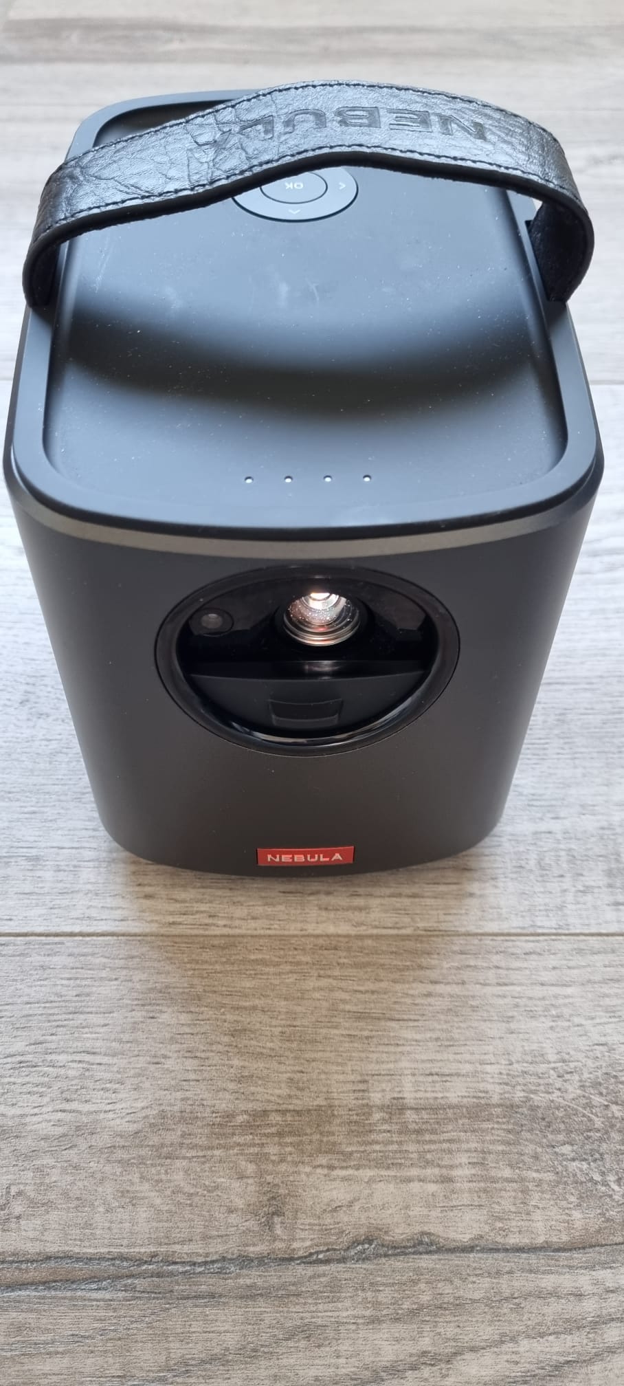 De eerste indruk is dat hij erg compact is. Hij is bovendien voorzien van een handige draaglus aan de bovenkant, dus je neemt hem eenvoudig mee. De accu gaat volgens het boekje zo'n 4 uur mee, in beamer-modus. Je kunt hem ook als speaker gebruiken (wist ik eerst niet), dan gaat de accu zo'n 30 uur mee. Er is een snoer meegeleverd, lang genoeg, om het apparaat op te laden. Na een paar uur is de accu vol. Uiteraard kun je de beamer ook aan de stroom hangen en gebruiken.