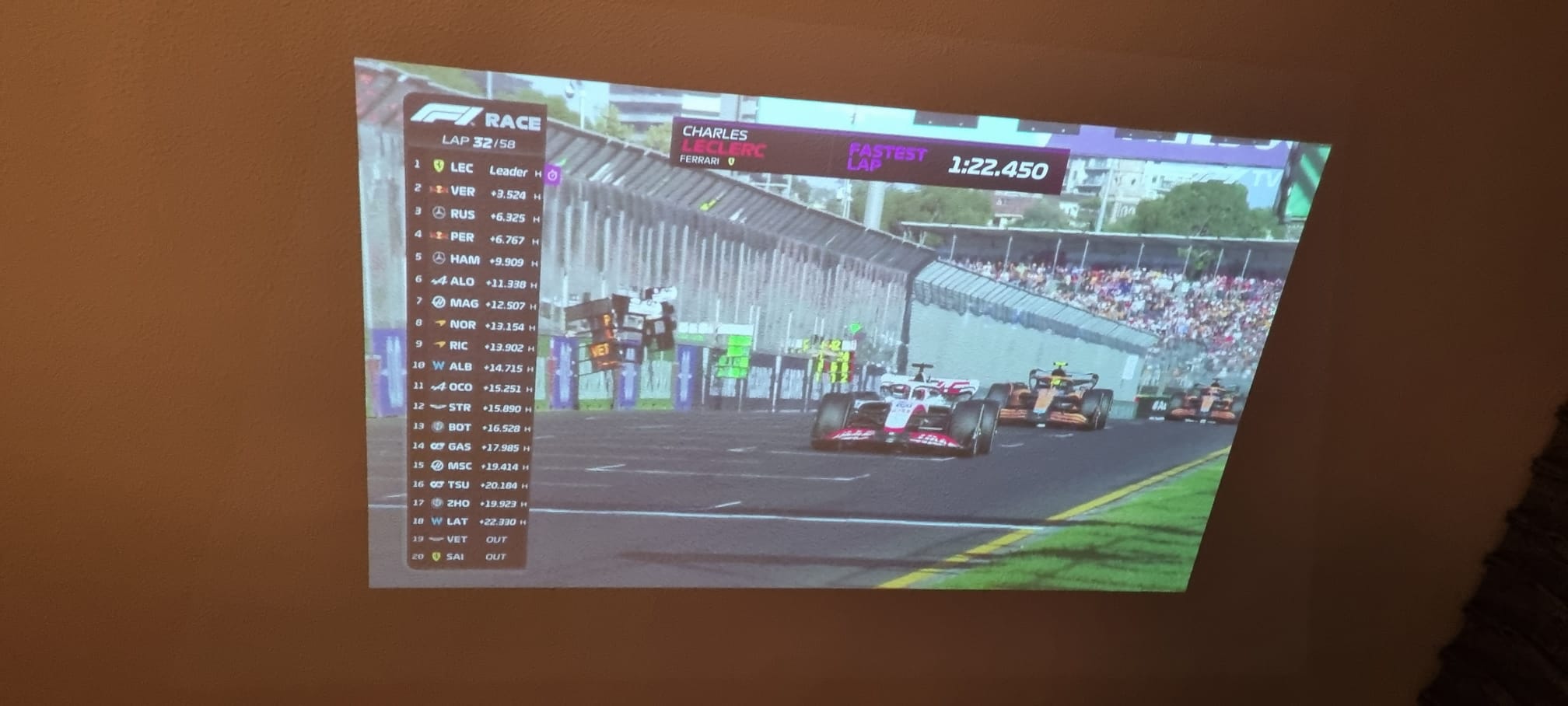 Zodra je hem aanzet, gaat de beamer gelijk scherp stellen. Hij heeft een erg mooi, scherp beeld. Zodra je hem wat beweegt, gaat hij gelijk weer scherp stellen. Hij maakt best wel wat geluid, het typische brommerige van een beamer, maar niet zo hard dat het hinderlijk is.