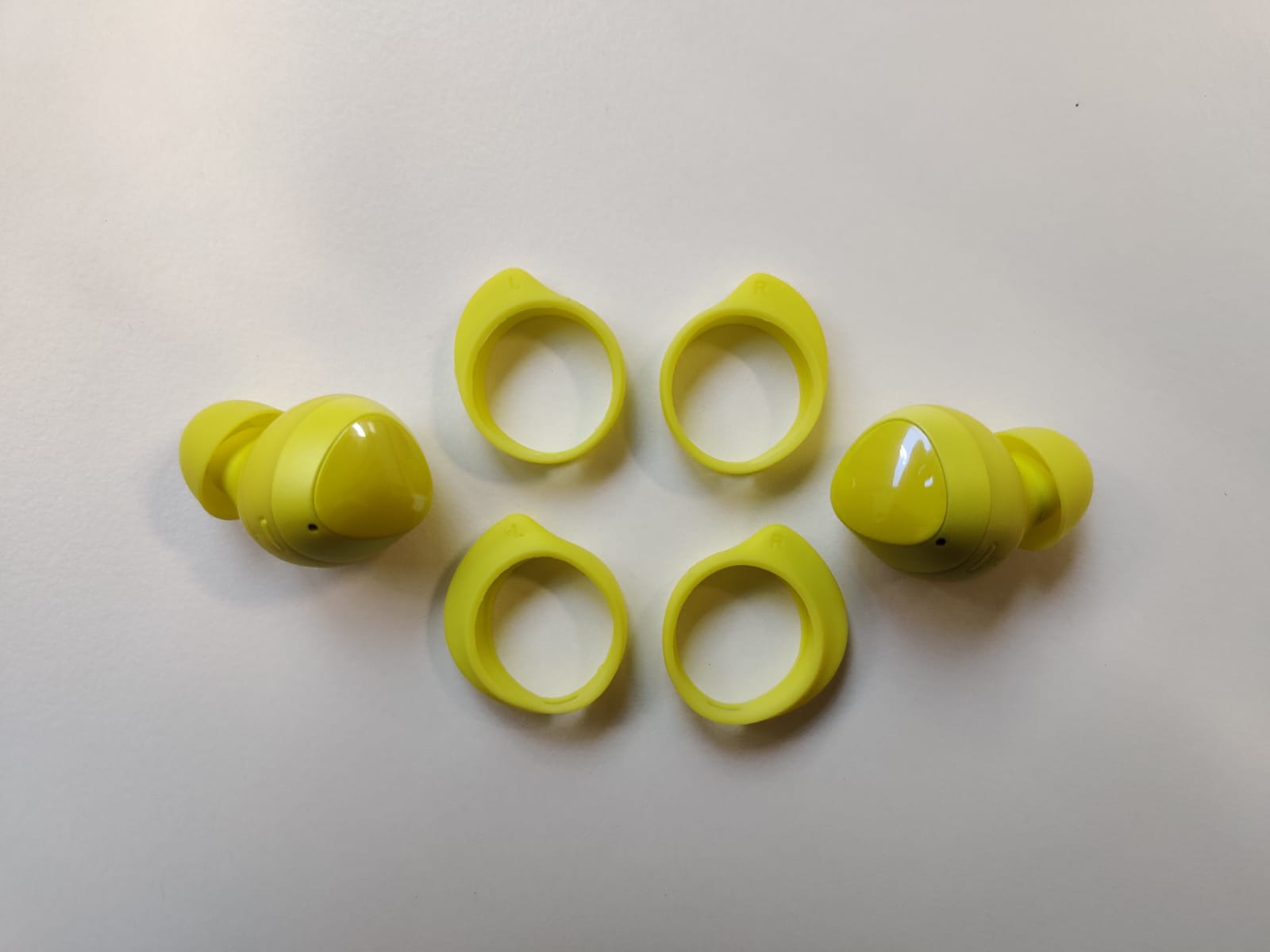 In de verpakking vind je drie sets Wingtips en Earbud tips. De Wingtip is een rubberen ring rond het externe deel van de Buds en steunt in de schelp van je oor voor stabiliteit. Komt goed van pas met sporten! Ze komen in verschillende vormen voor elk oortype en voelen niet storend aan. De Earbud tips zijn rubberen in-ear dopjes en je kunt kiezen uit klein, middel of groot formaat. Ik heb zelf kleine oren, maar de kleine dopjes vulden niet voldoende aan in mijn oor en maakte het geluid schel. Ik heb gekozen voor de grote dopjes, die zaten comfortabeler. Ook klonk mijn muziek voller en krachtiger, omdat het geluid geïsoleerd bleef. Als je de juiste combinatie van Wingtips en Earbud tips hebt gevonden zitten ze erg lekker in het oor, comfortabel genoeg om ze bijvoorbeeld een volledige werkdag in te houden op kantoor.