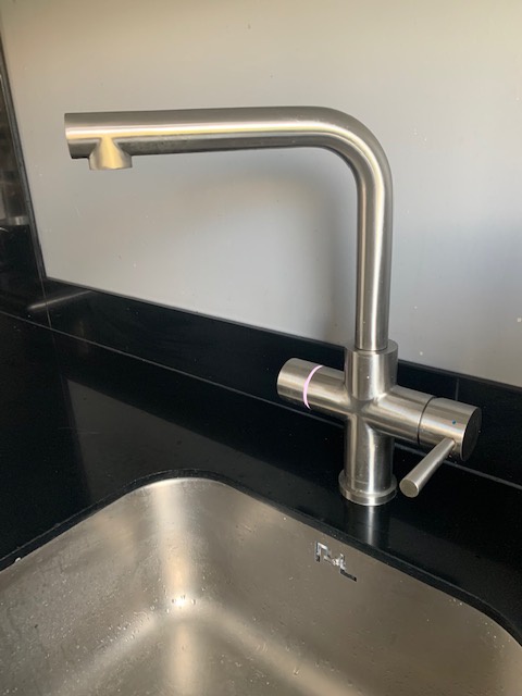 Je hebt snel door hoe hij werkt. De kraan is erg duidelijk en handig in gebruik. Het is ook echt een aanvulling met koken. Pannetje onder de kraan en je hebt direct kokend water dat je op je pit kunt zetten. Dit bespaart heel veel tijd (en hopelijk ook gas en energie). Je leest altijd dat een kokend-water-kraan een echt luxe-product is. En zo voelt het ook! Het geeft me een heel erg luxe gevoel om direct kokend water uit je kraan te hebben. En zo praktisch ook.