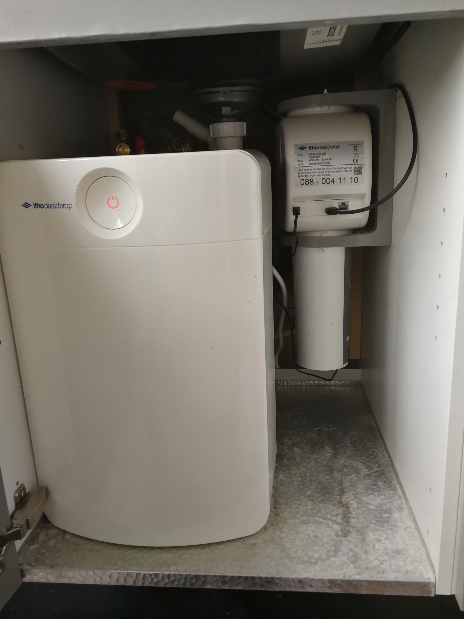 Je hebt vier functies bij deze kraan: heet, koud, kokend en gefilterd. De bediening gaat heel natuurlijk: koud en warm aan 1 kant, kokend en gefilterd aan de andere kant. Bij de installatie werd gevraagd aan welke kant (links of rechts) ik koud en warm wilde en aan welke kant kokend en gefilterd. Dit kun je bij de installatie dus zelf bepalen, wat ik wel handig vind. Ik heb gekozen voor links het kokende gedeelte. Er zijn een paar vaste hoeveelheden die de kraan geeft. Bijvoorbeeld: bij 2 keer drukken op de ledknop krijg je ongeveer 1,2 liter water (kokend of gefilterd), bij 3 keer drukken ongeveer 2 liter. Loopt de kraan en druk je nog een keertje op de knop, dan stopt hij. Dus je hoeft niet te wachten tot hij klaar is met die hoeveelheid.