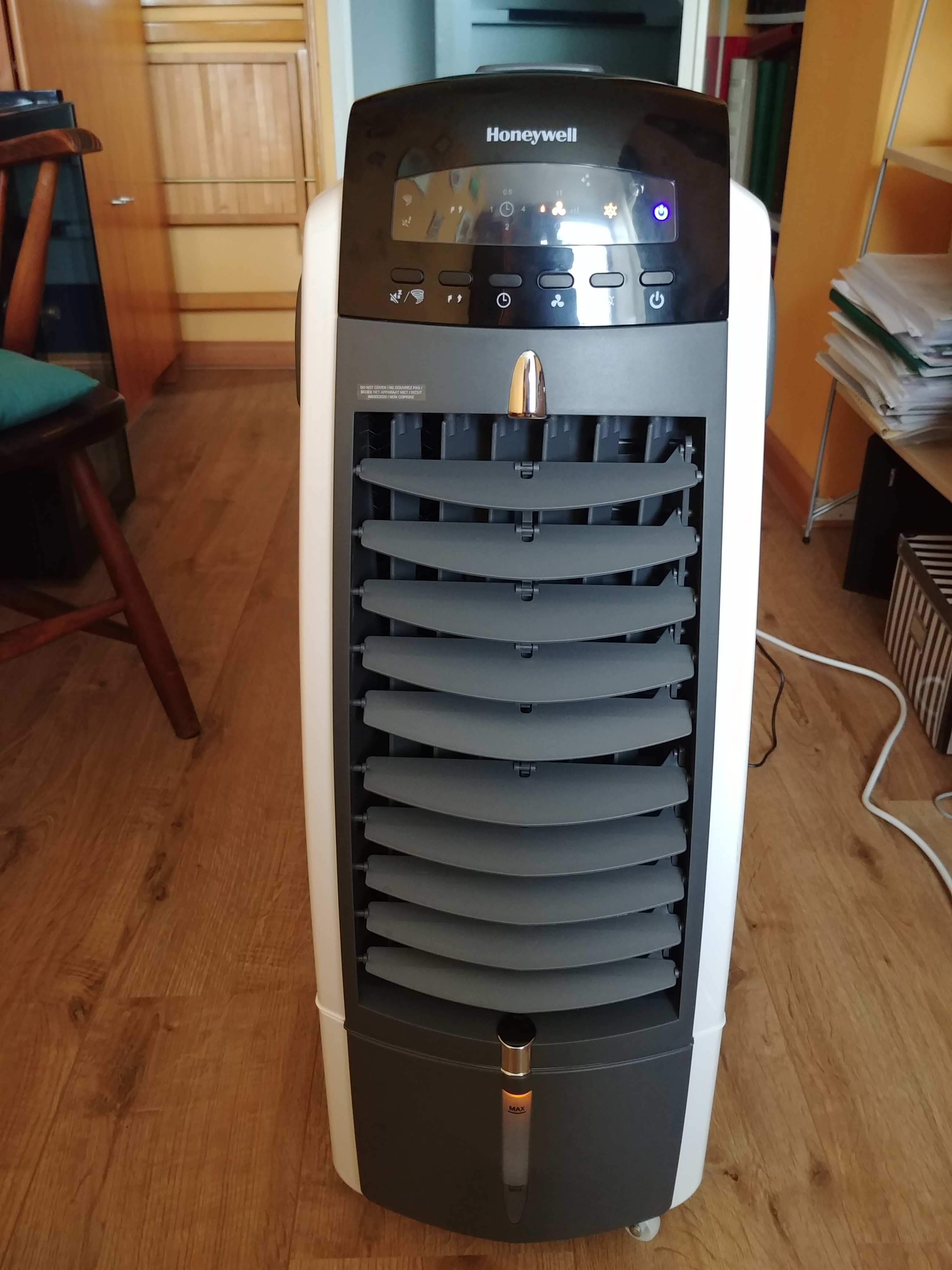 Met een aantal dagen tropische hitte op komst was ik blij met de mogelijkheid om deze Honeywell aircooler te testen. Naast dat het een fraaie ventilator is, zorgt dit apparaat ook voor verkoeling door vochtige lucht te laten verdampen en de ruimte in te blazen.